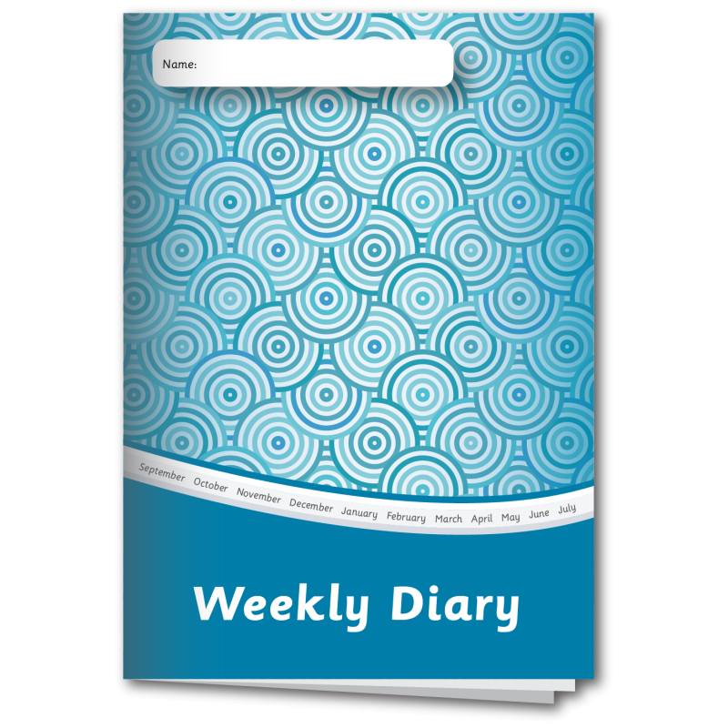 A5 stapled book with 96 pages. Solid in packs of 100. Double page spread for each week.